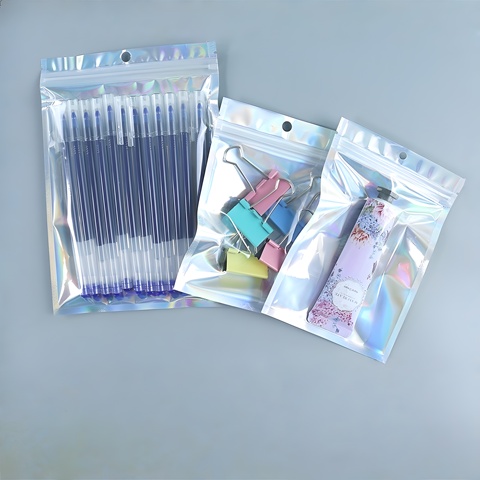 Custodia per telefono cellulare con Logo olografico personalizzato richiudibile Opp sacchetti a chiusura lampo in plastica laminata trasparente per accessori per capelli